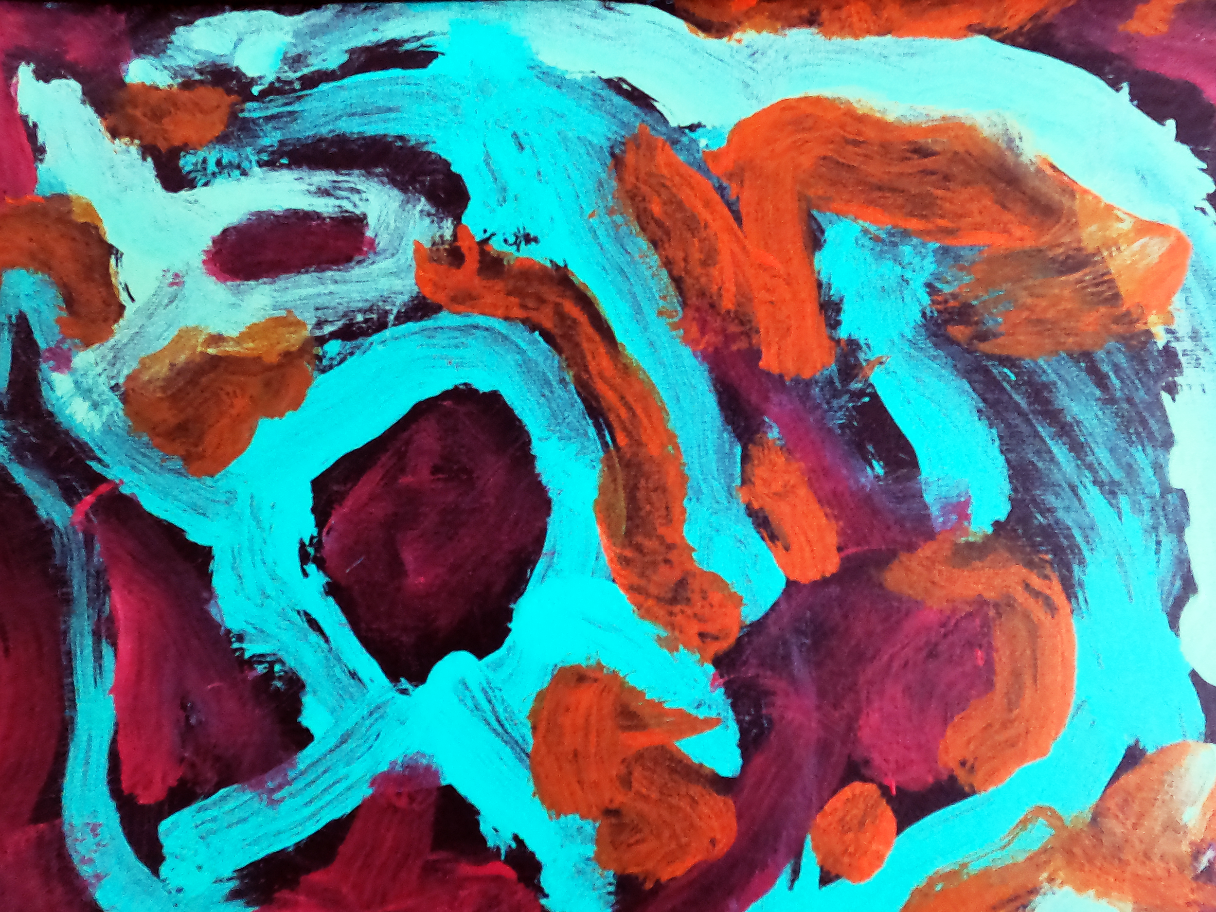I’m an artist who began creating art on paper before transitioning to canvas. I have mitochondrial disease, but I wanted to show the world something new through art. I want to show that even though you have a disease, you could still be seen. There are many ways of showing yourself. I paint flags because I am Brazilian and Greek, and I also created one for my dog, as I love animals. I created one that resembles a heart, as I need to check my heart periodically. I did one that looks like three ears because I have good hearing. I created a project that simulates what happens in my disease for the UMDF, a foundation dedicated to helping people with diseases. I’m working on new art pieces every day, even in my head. I made one that resembles poppy seeds from the Wizard of Oz movie. I created one that resembles food on a plate. All of my work is abstract.
