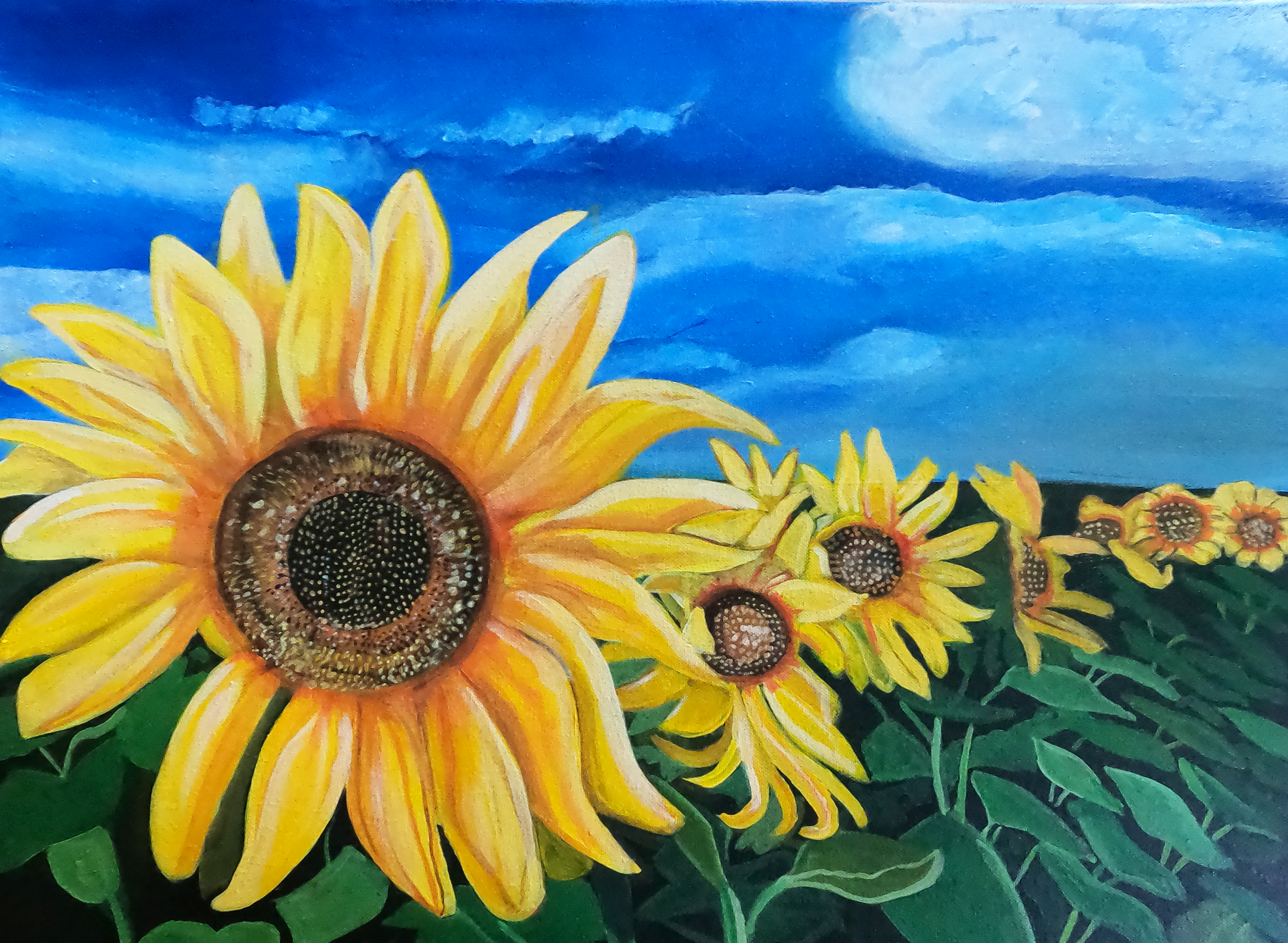 AJI like painting pictures of scenes that remind me of the holidays. I also enjoy painting beaches, pumpkins, and flowers. Fall Harvest - 2024 - Acrylic on Canvas Red Leaves- 2025 Acrylic on Canvas Sunflowers - 2025 - Acrylic on Canvas Tropical Beach - 2025 - Acrylic on Canvas Untitled - 2025 - Acrylic on Canvas